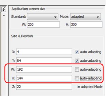 • The application Adapted mode allows to scale the application to adapt the real screen size of the cell-phones. This Adapted mode works well for the image and the geometry elements, however this mode doesn’t work well for the text elements, in this case you should use the other techniques such as the scrolling or not allowing the text to auto-adapt.
