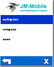 To give you the ideas of what you can do with the JM-Mobile tools, take a look at the simple example projects below. Feel free to let us know if you need to create the more complete interactive content, event the interactive applications with dynamic content. We could collaborate with you to create the more complex mobile interactive contents or the mobile daily infomation services. Feel free to contact us and let us know your proposals. The easy way to test these sample is download them, extract them, and then send the *.jar files to your java-enable cell-phones through the bluetooth/usb connection. You can use java mobile simulator such as the Sun Java Wireless Toolkit 2.5.1 (WTK) for CLDC to test these demos on PC: